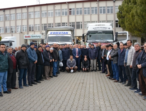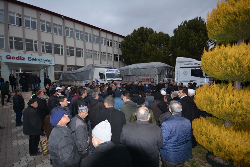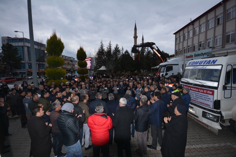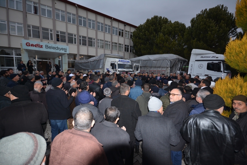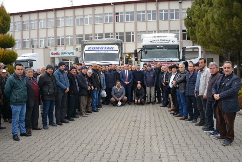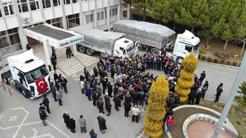Gediz Kaymakamlığı, Gediz Belediye Başkanlığı, Gediz Ticaret Ve Sanayi Odası, Gediz Esnaf Odaları, Gediz Muhtarlar Derneği, Sivil Toplum Kuruluşları, Gediz Halkı, Belde ve Köylerimiz tarafından organize edilen 2 tır yardım malzemesi deprem bölgesine ulaştırılmak üzere dualarla yola çıktı.