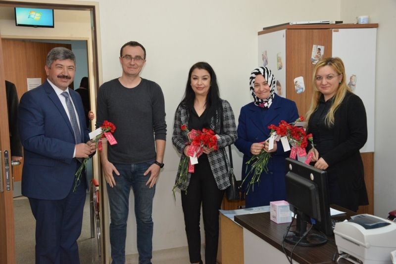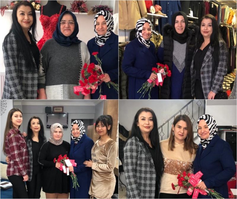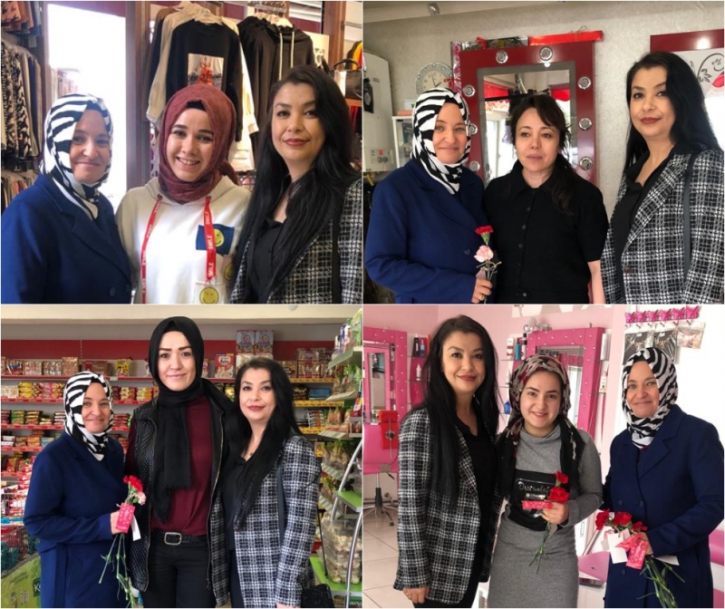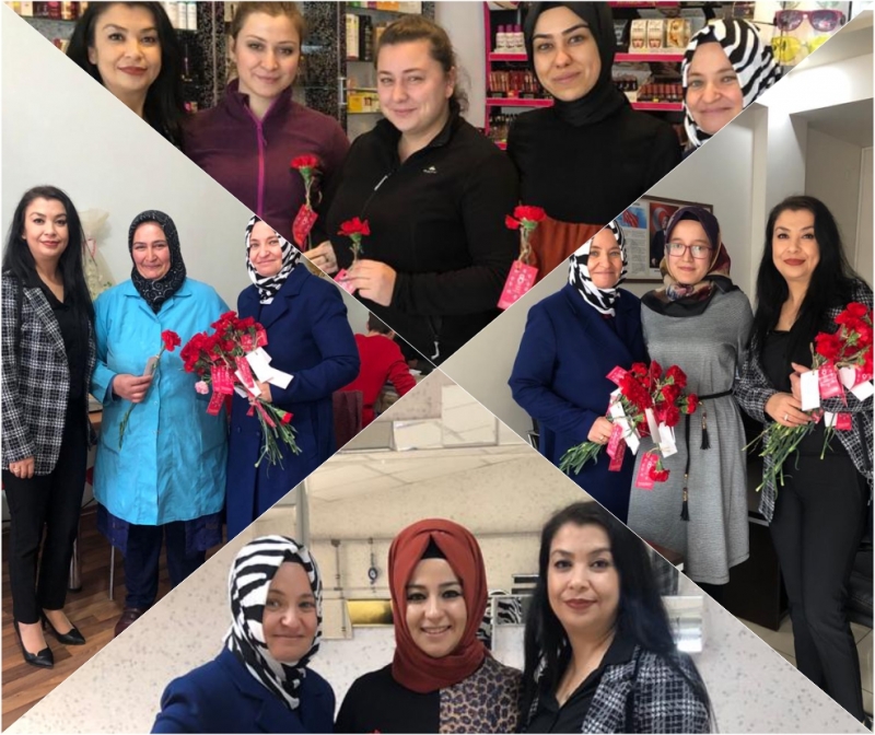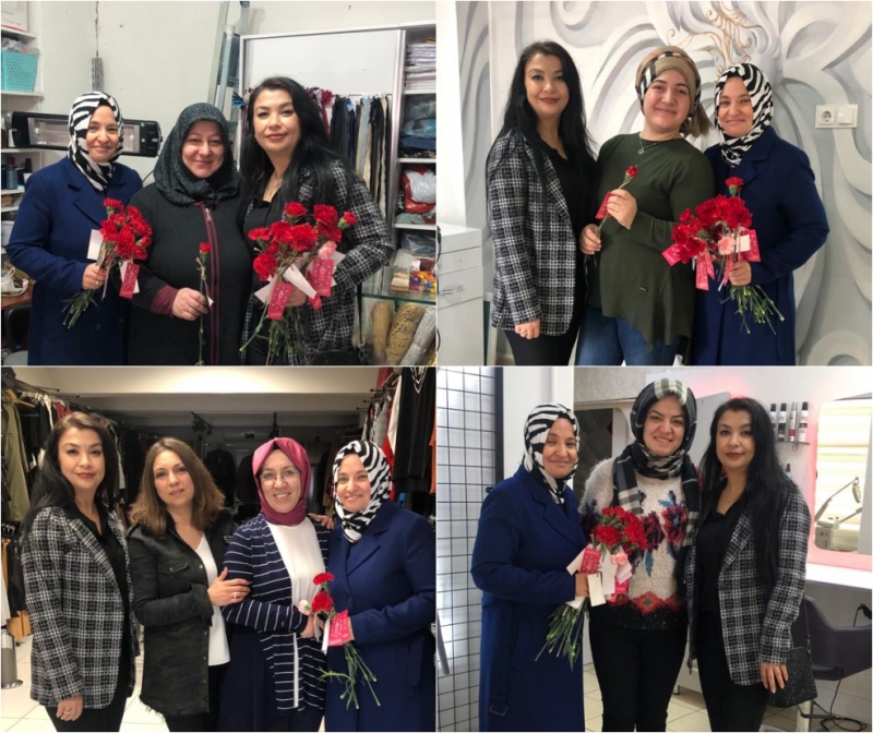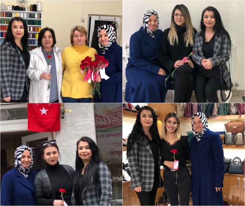 Ayrıca oluşturulan ekipler Gediz kent merkezinde hastane, okul, yurt, sağlık ocakları, resmi kurum ve kuruluşlar ile özel kurum, kuruluş ve teşekküllerde bulanan çalışan bayanlara karanfil dağıttılar.