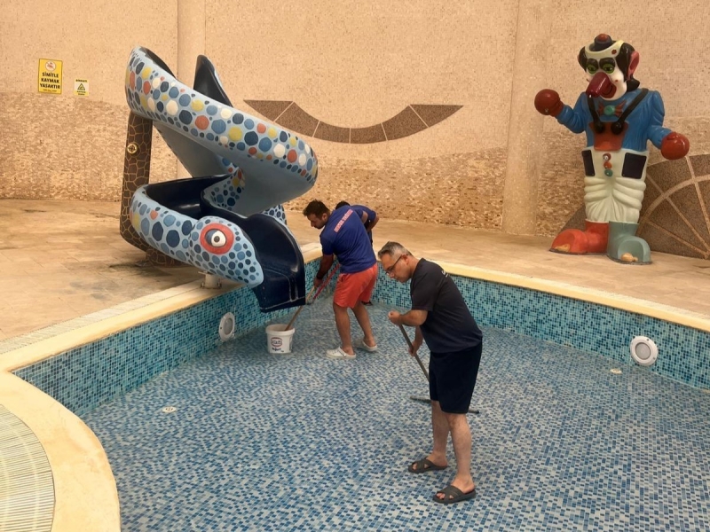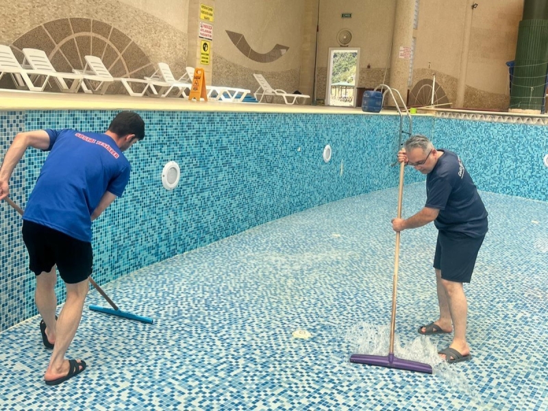 Bu kapsamda, erkek aquapark bölümünde kapsamlı bir temizlik, hijyen ve teknik bakım çalışması gerçekleştirildi.
