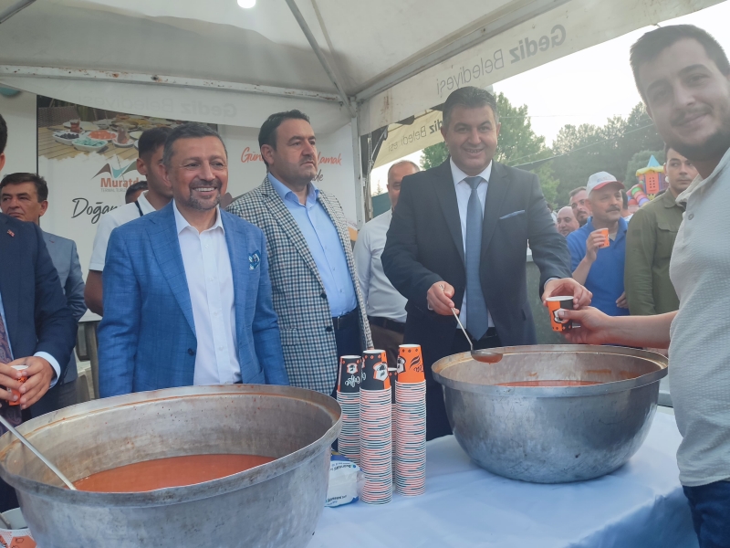 Kütahya Valisi Işın, Milletvekili Erbaş, Kaymakam Uzun ve Başkan Akel, Gediz Belediyesi Tarhana Evi standında vatandaşlara tarhana ikram ederek festivale renk kattı.