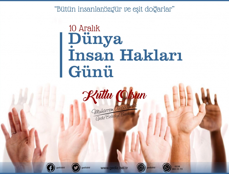 Bu düşüncelerle, 10 Aralık İnsan Hakları Günü’nü bir kez daha kutluyor, bu günün milletime ve tüm insanlığa barış, huzur ve adalet getirmesini temenni ediyor, bütün vatandaşlarımıza sağlıklı, huzurlu ve mutlu günler diliyorum.
