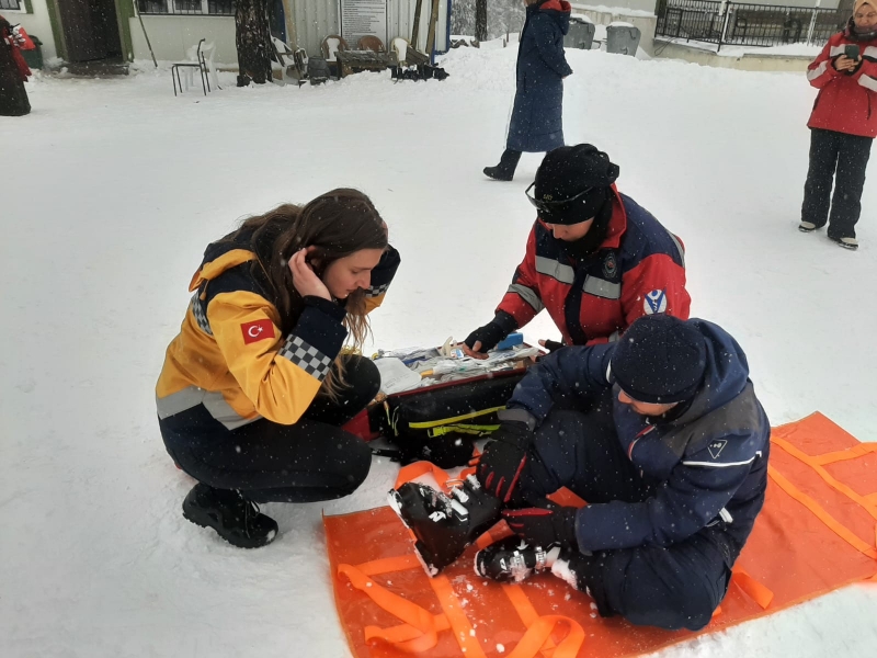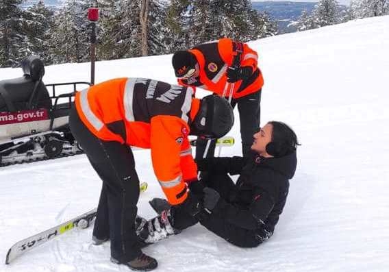 Gediz Murat Dağı Termal Kayak Merkezi'nde görevli JAK, UMKE ve 112 Acil Sağlık ekipleri, kayak yaparken pistlerin dışına çıkarak kaybolan, yaralanan ya da mahsur kalanların yardımına koşuyor.